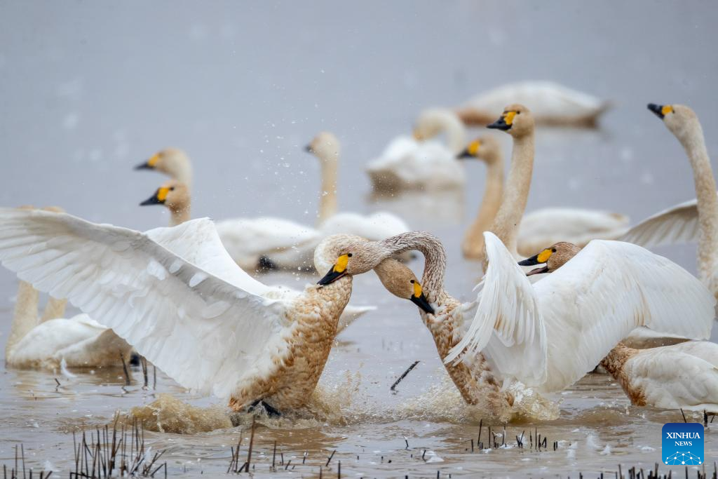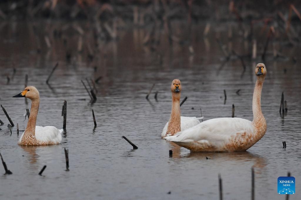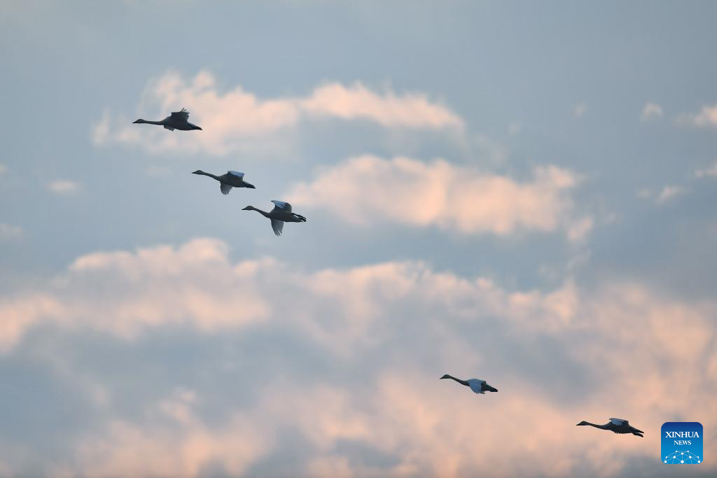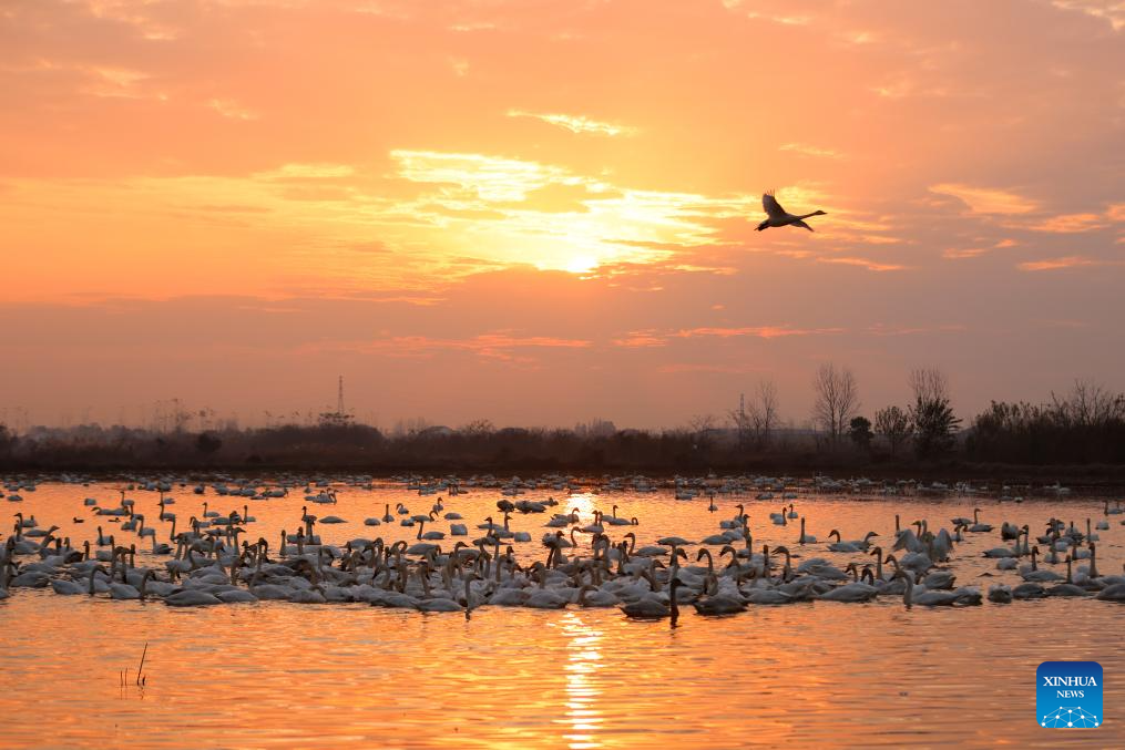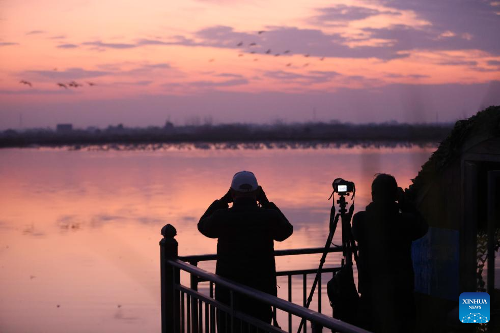 In recent years, comprehensive ecological protection and restoration projects have been carried out in the area. These initiatives, including water purification, replenishing food sources, and restoring native vegetation, have significantly improved the migratory birds' habitat. (Photo by Zhou Yang/Xinhua)