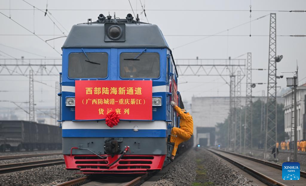 Arrival ceremony held for first freight train of Guangxi Fangchenggang-Chongqing Qijiang railway