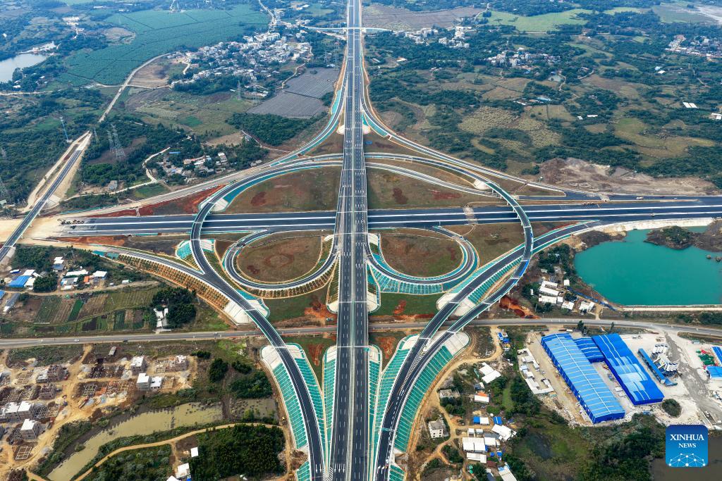 An aerial drone photo taken on Dec. 30, 2025 shows an expressway linking Dongcheng Town of Danzhou City and the Yangpu Port in south China's Hainan Province.