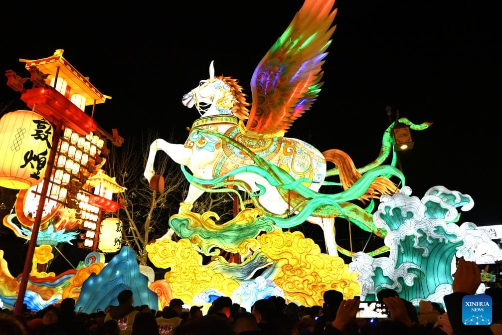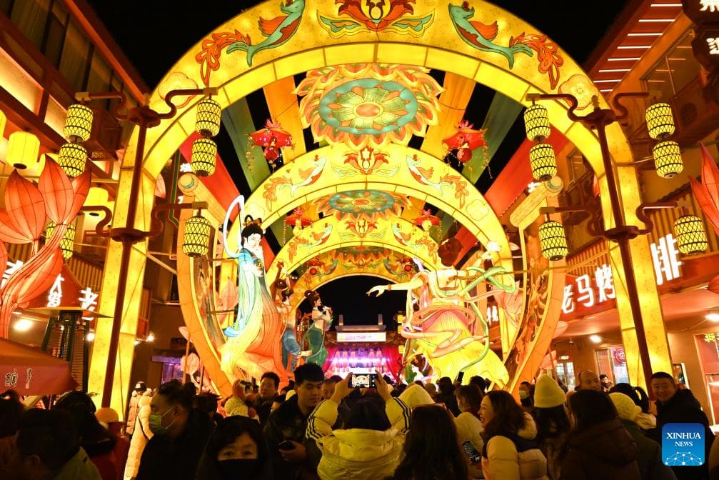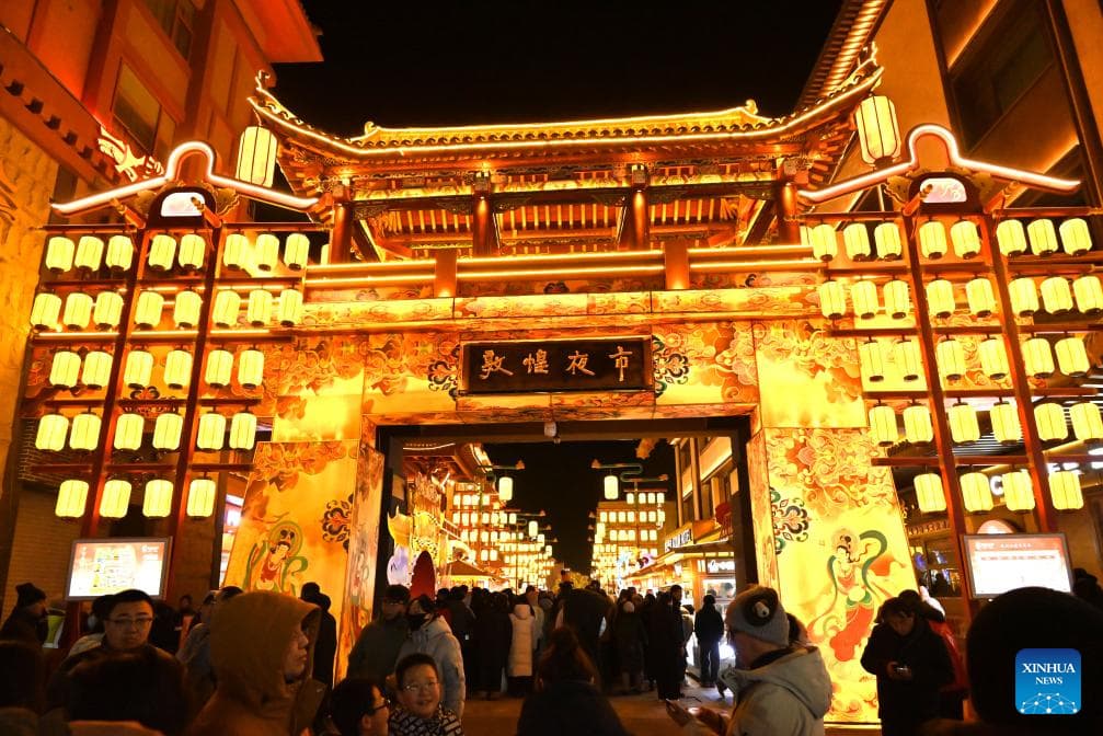 Tourists visit a lantern fair at a night market in Dunhuang, northwest China's Gansu Province, Dec. 31, 2025.