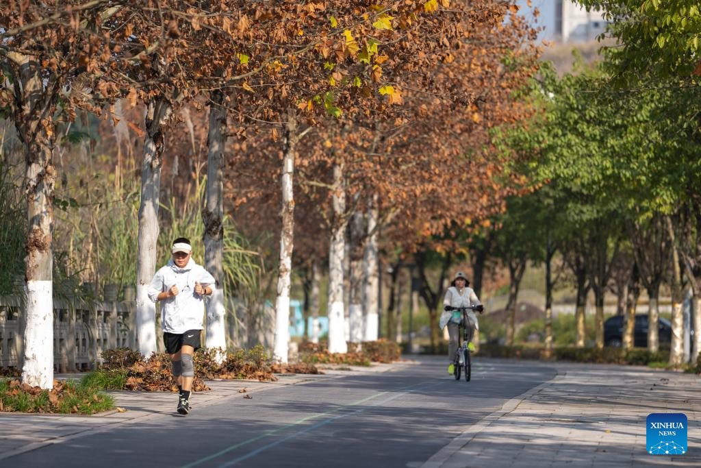 People jog at a riverbank park in Chongqing, southwest China, Jan. 7, 2026. Acting as a crucial ecological gateway for the upper reaches of the Yangtze River, Chongqing has intensified its environmental protection efforts in recent years.
