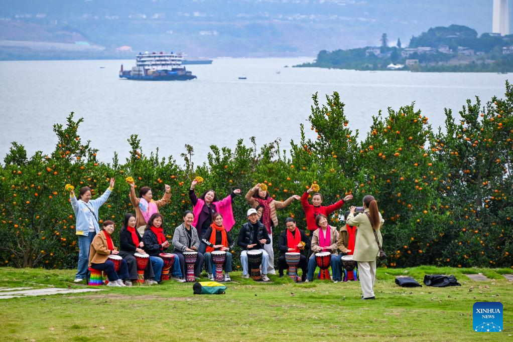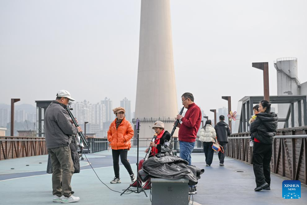 People practice instruments at a park in Chongqing, southwest China, Jan. 5, 2026. Acting as a crucial ecological gateway for the upper reaches of the Yangtze River, Chongqing has intensified its environmental protection efforts in recent years.