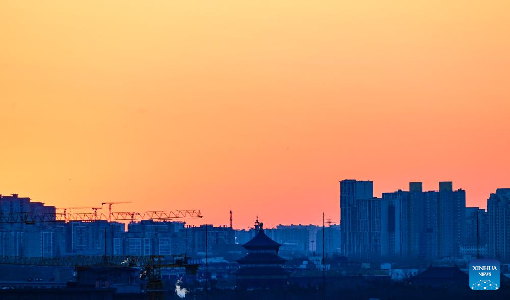 This photo taken on Jan. 11, 2026 shows a view of the morning glow in Beijing, capital of China. (Xinhua/Chen Yehua)