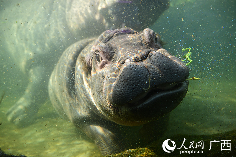 At the Nanning Zoo in Nanning, south China's Guangxi Zhuang Autonomous Region, hippopotamuses swim leisurely in the water, where the temperature remains constant. (People's Daily Online/Lei Qijun)