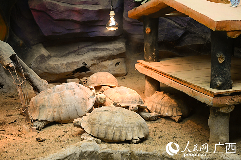 Tortoises stay warm with the help of a heating device at the Nanning Zoo in Nanning, south China's Guangxi Zhuang Autonomous Region. (People's Daily Online/Lei Qijun)