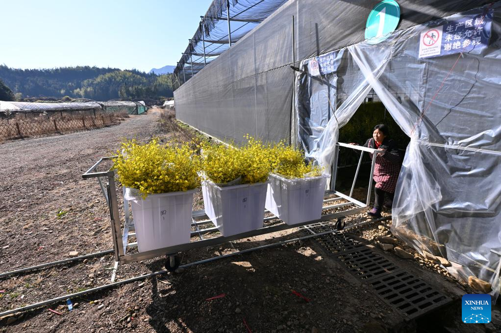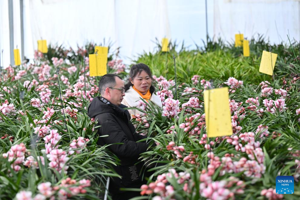 Greenhouses hum with activity for flower sales boom during Spring Festival in SE China's Zhouning