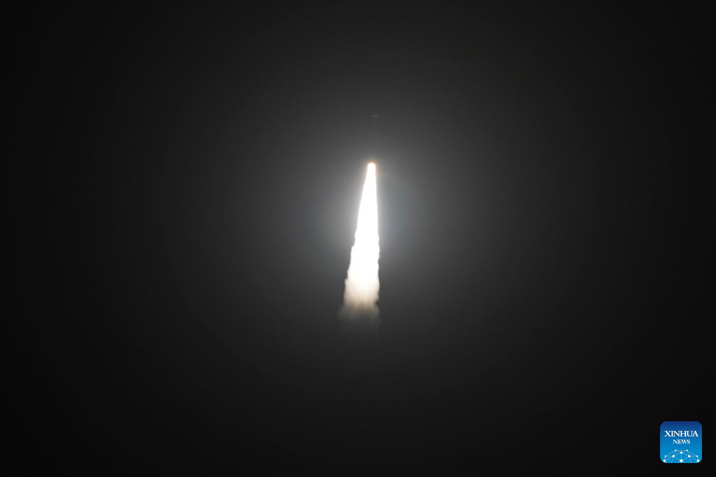 A rocket carrying a group of satellites belonging to the Tianqi constellation blasts off from the waters near east China's Shandong Province, on Jan. 16, 2026. The commercial rocket, CERES-1 Y7, blasted off at 4:10 a.m. (Beijing Time), placing the satellites into planned orbit. The Taiyuan Satellite Launch Center conducted this offshore mission. (Photo by An Di/Xinhua)
