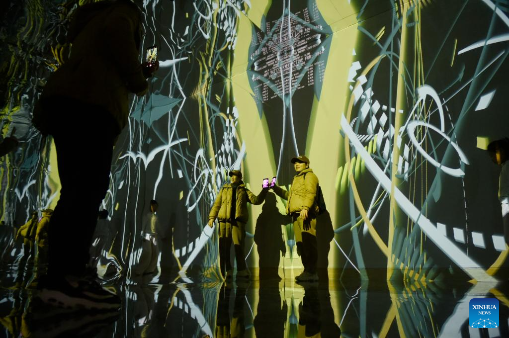 The exhibits include various media forms such as digital immersive installations. (Xinhua/Lu Peng)