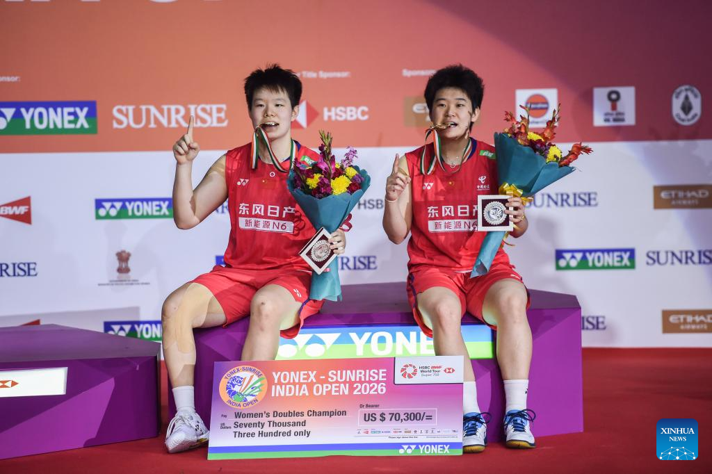 NEW DELHI, Jan. 18 (Xinhua) -- China bagged the men's and women's doubles gold medals at badminton's India Open on Sunday.