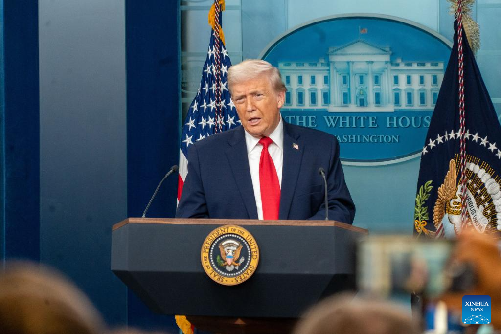 U.S. President Donald Trump speaks during a press briefing at the White House in Washington, D.C., the United States, on Jan. 20, 2026. Trump said Tuesday he will not attend an emergency Group of Seven summit proposed by French President Emmanuel Macron. (Photo by Li Yuanqing/Xinhua)