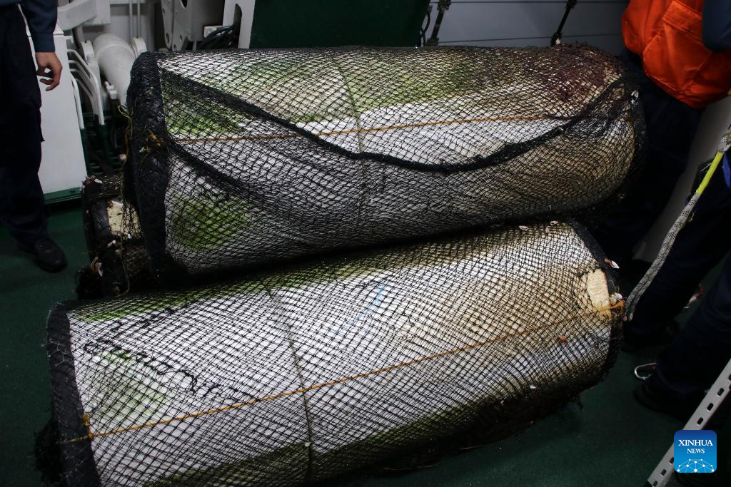 This photo taken on Jan. 12, 2026 shows illegally planted fish traps dismantled by law enforcement officers aboard the China Coast Guard vessel Fuying patrolling the waters near the Xianbin Jiao in the South China Sea. The illegally planted fish traps were spotted by the China Coast Guard vessel Fuying patrolling the waters near the Xianbin Jiao in the South China Sea on Jan. 12.