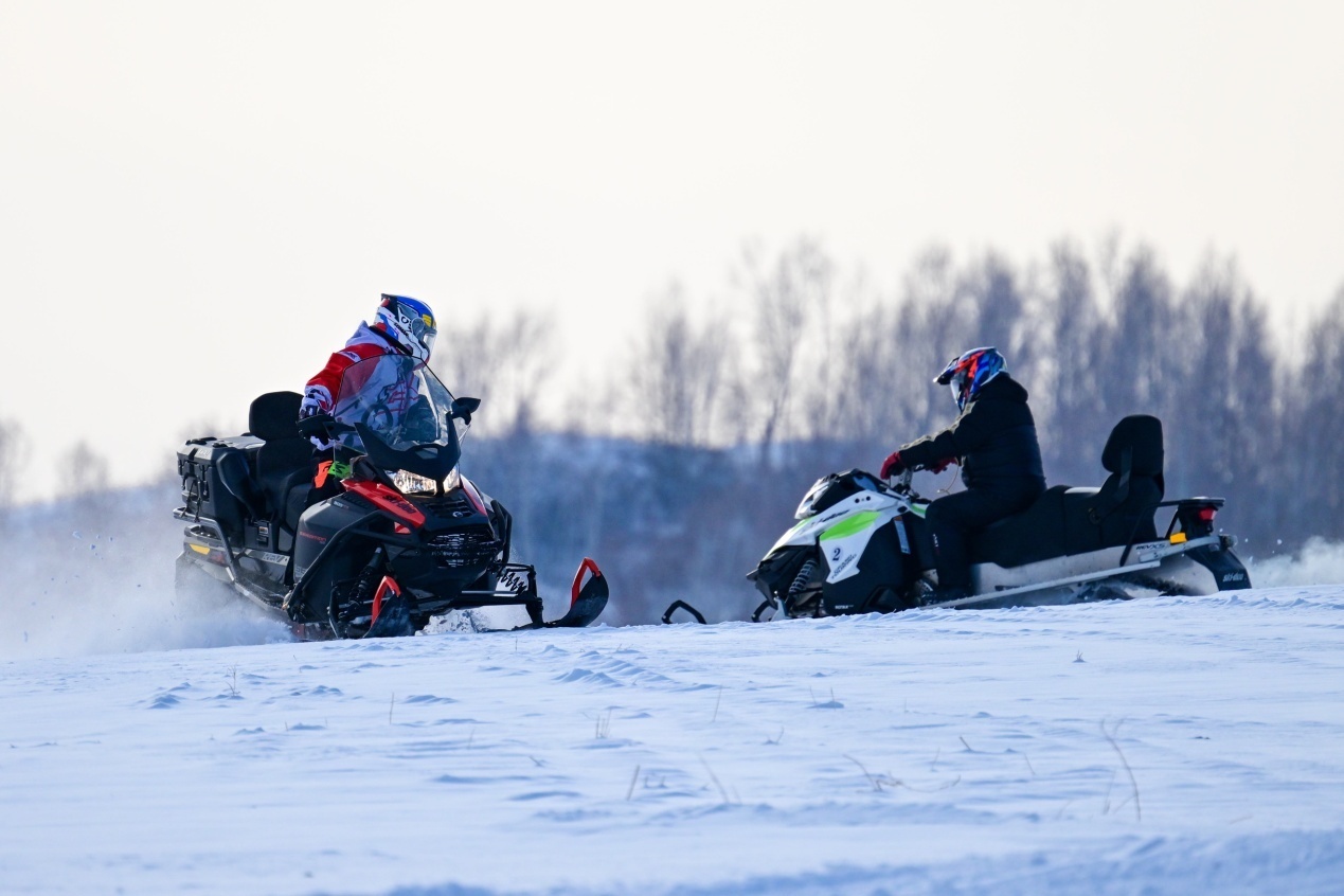 Tourists ride snowmobiles at a ski resort in Yakeshi, Hulun Buir, north China's Inner Mongolia autonomous region, Dec. 22, 2025. (Photo/Wang Xiaobo)