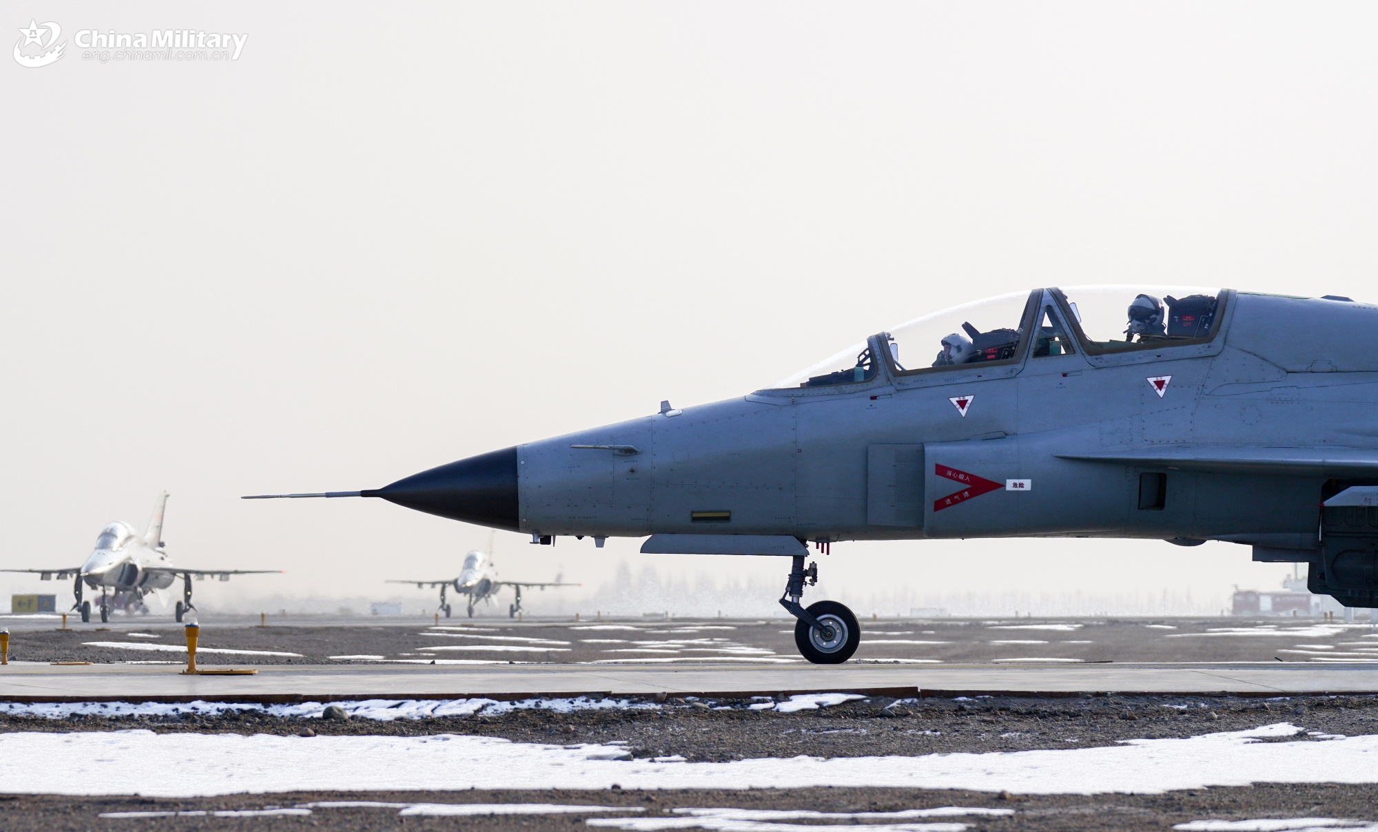 JL-9 jet trainers attached to the Chinese PLA Air Force Xi'an Flying College taxi on the runway during a flight training exercise in early January, 2026. (eng.chinamil.com.cn/Photo by Li Liben)
