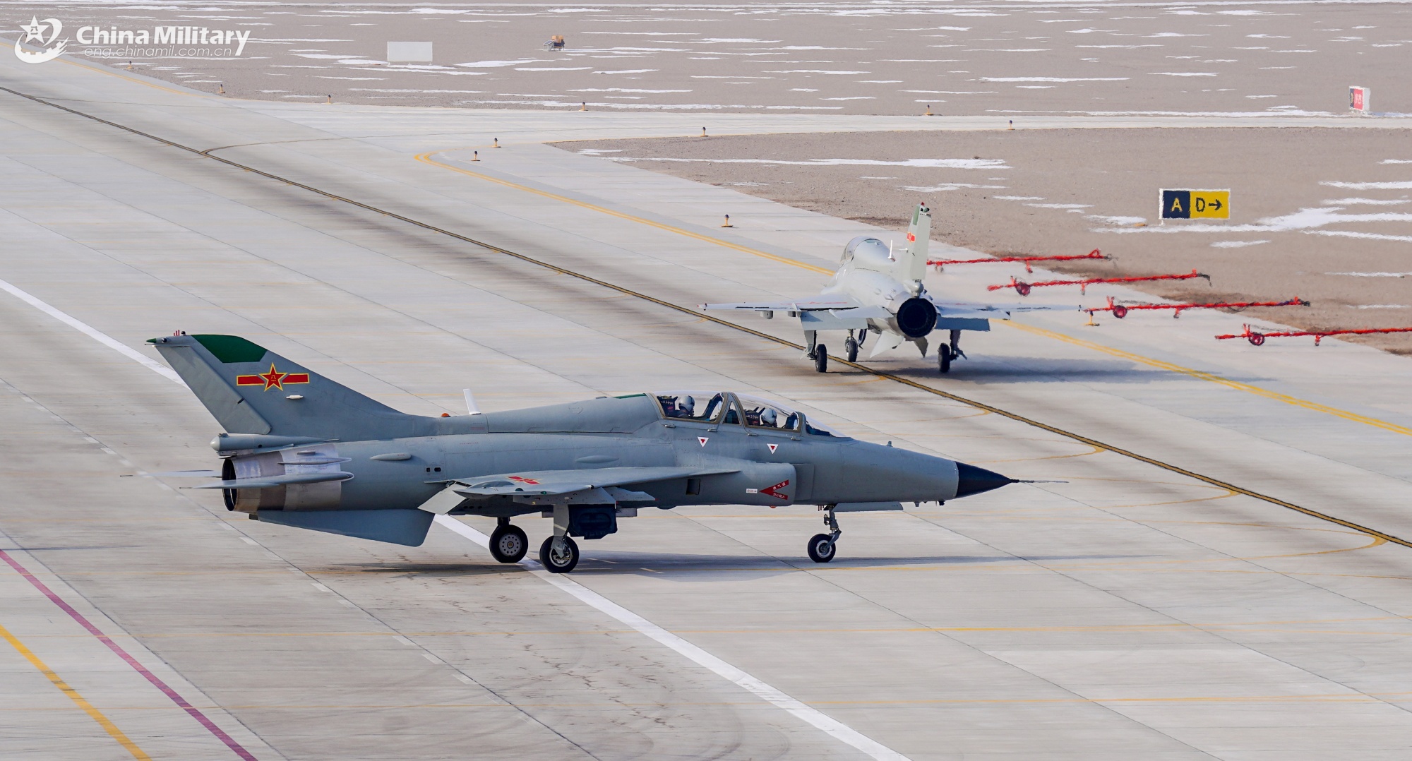 A JL-9 jet trainer attached to the Chinese PLA Air Force Xi'an Flying College taxies on the runway during a flight training exercise in early January, 2026. (eng.chinamil.com.cn/Photo by Li Liben)