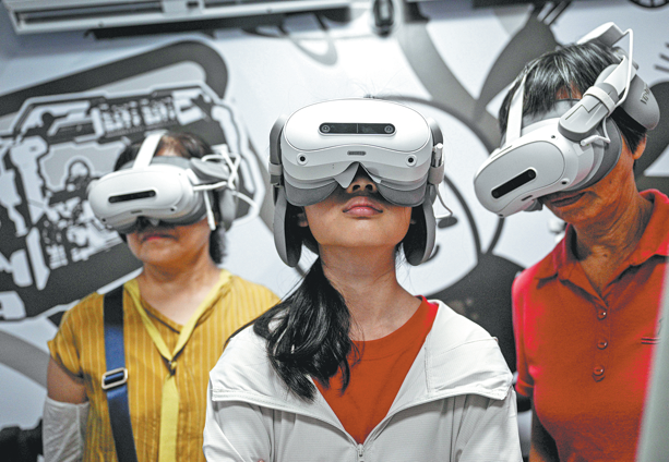 Visitors enjoy an MR interstellar travel experience at the center on Oct 7. PU XIAOXU/XINHUA