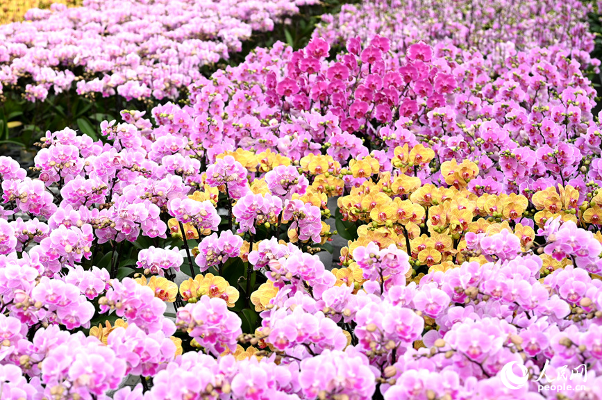The city currently boasts a total butterfly orchid planting area of over 280 mu (about 18.67 hectares). With nearly 200 varieties, butterfly orchid planting bases in the city produce more than 1.5 million plants annually, with around 200,000 sold around the Spring Festival.