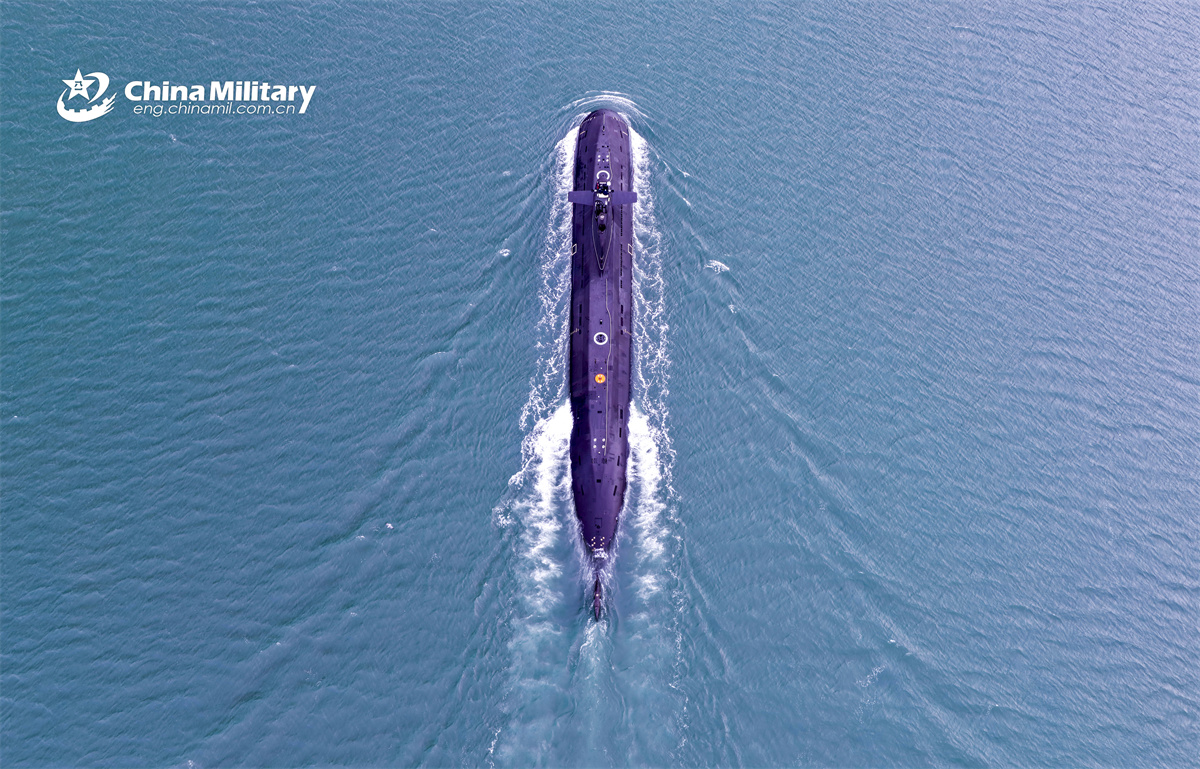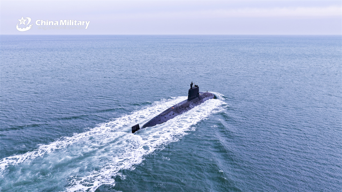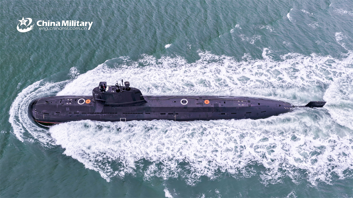 A submarine attached to a flotilla with the navy under the Chinese PLA Northern Theater Command steams on the sea during a maritime training exercise on January 4, 2026. (eng.chinamil.com.cn/Photo by Zhang Nan)