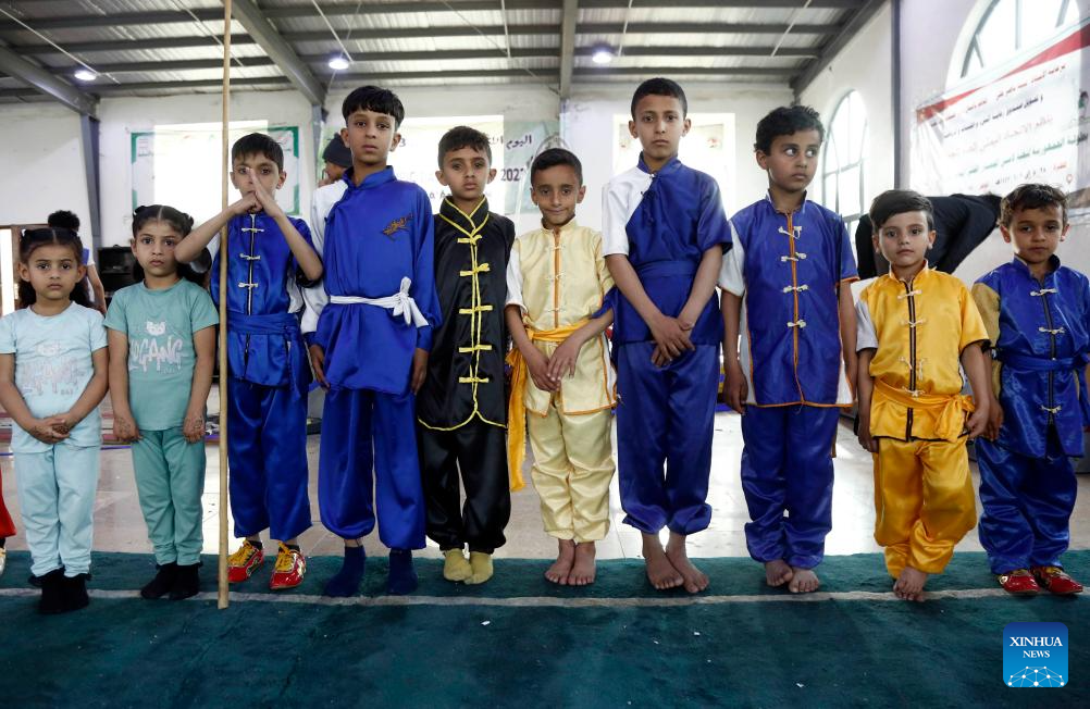 Yemeni junior competitors take photos during a Wushu and Kung Fu competition in Sanaa, Yemen, on Jan. 28, 2026. (Photo by Mohammed Mohammed/Xinhua)