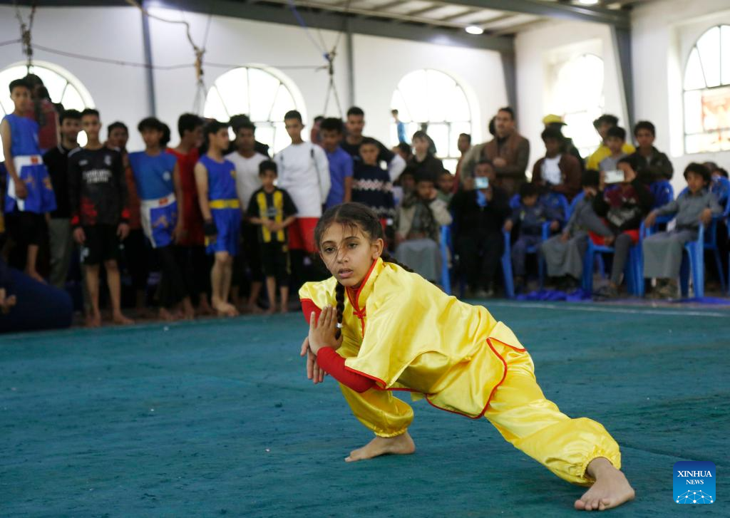 A female competitor of the junior category performs during a Wushu and Kung Fu competition in Sanaa, Yemen, on Jan. 28, 2026. (Photo by Mohammed Mohammed/Xinhua)