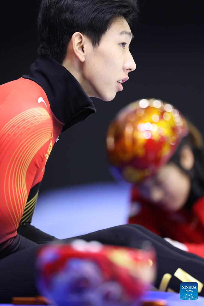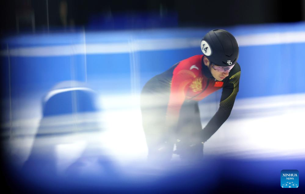Chinese short track speed skater Sun Long is seen during a training session ahead of the upcoming Milan-Cortina 2026 Winter Olympics in Beijing, China, Jan. 29, 2026. (Xinhua/Li Ming)