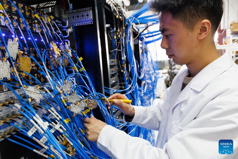 Researcher Liu Zhenghe checks wires at a lab of the Institute of Physics under the Chinese Academy of Sciences (CAS) in Beijing, capital of China, Jan. 21, 2026.