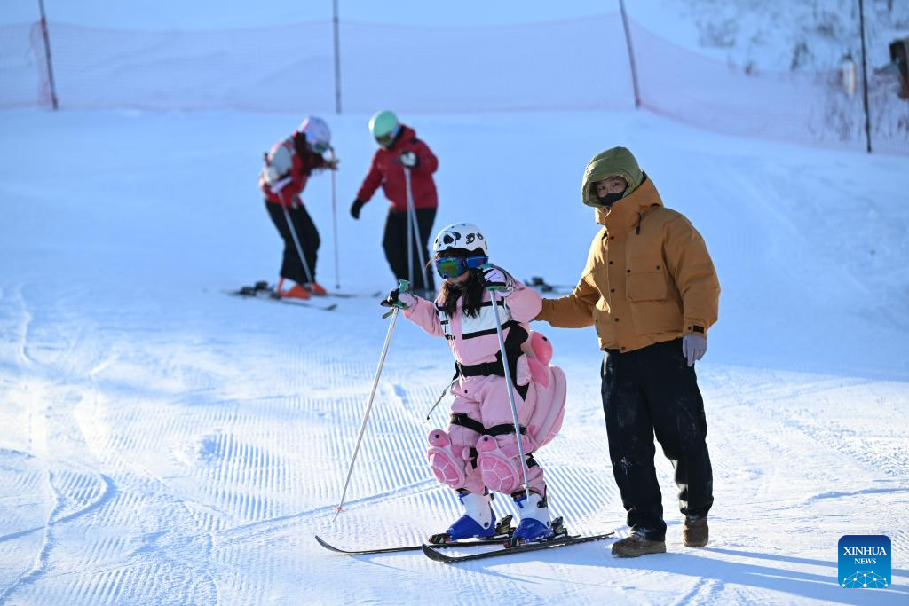 Tourists ski at the Phoenix Mountain scenic area in Yakeshi of Hulun Buir, north China's Inner Mongolia Autonomous Region, Jan. 21, 2026. Yakeshi has been an important base for cold-area automotive testing due to its long and freezing winter season. A large number of engineers and technicians pay regular visit for business purpose to the city during the winter, but they also become a stable client group for other services available here.
