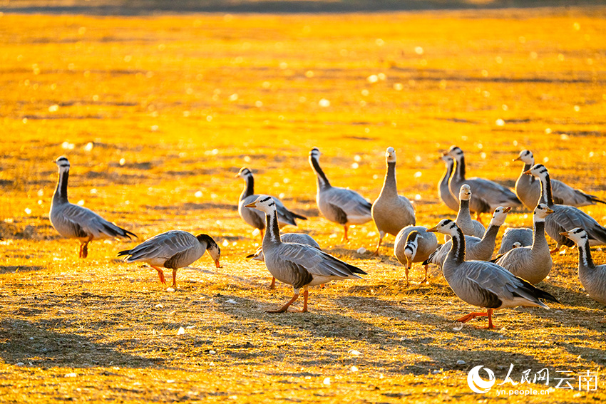 Photo shows migratory birds at the Lashihai wetland park in Lijiang, southwest China's Yunnan Province. (Photo/Xu Jun)