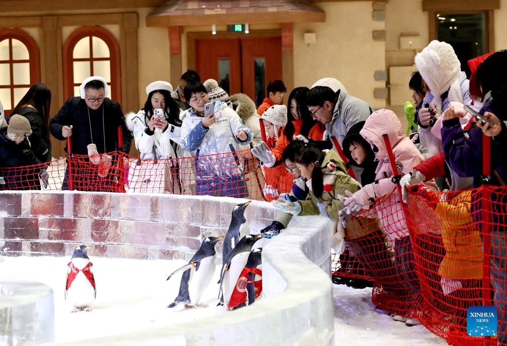 People have fun in an indoor ice and snow world in Shanghai, east China, Feb. 3, 2026. (Xinhua/Fang Zhe)