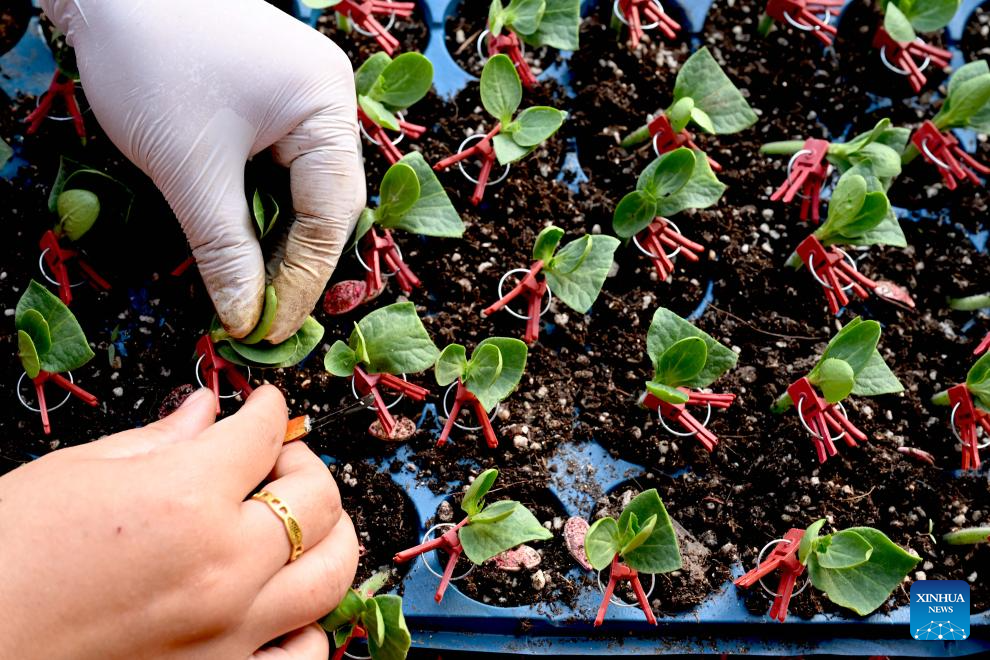 A farmer grafts watermelon seedlings in a greenhouse in Zhaoqiao Township in Bozhou City, east China's Anhui Province, Feb. 4, 2026. Wednesday marks "Lichun," or the Beginning of Spring, the first of the 24 solar terms on the Chinese lunar calendar. Traditionally, it is also a symbolic start of farming work for the new year. (Photo by Liu Qinli/Xinhua)