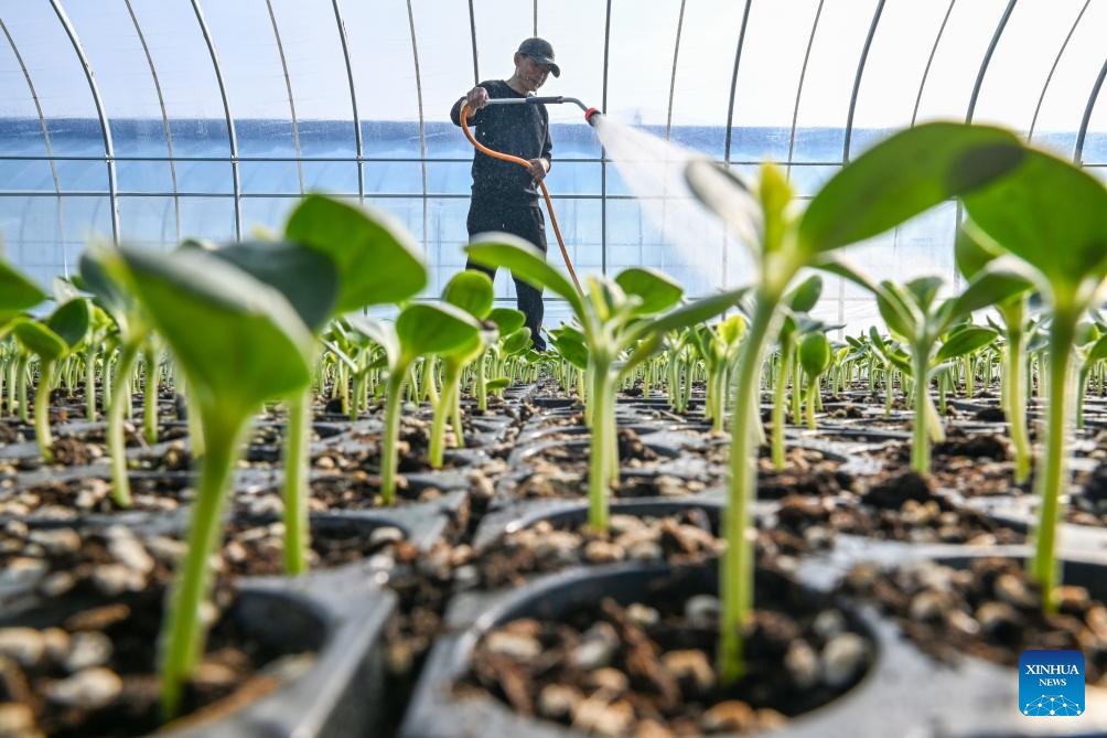 A villager waters the melon seedlings at Xiayi County in Shangqiu City, central China's Henan Province, Feb. 4, 2026. Wednesday marks "Lichun," or the Beginning of Spring, the first of the 24 solar terms on the Chinese lunar calendar. Traditionally, it is also a symbolic start of farming work for the new year. (Photo by Wang Gaochao/Xinhua)