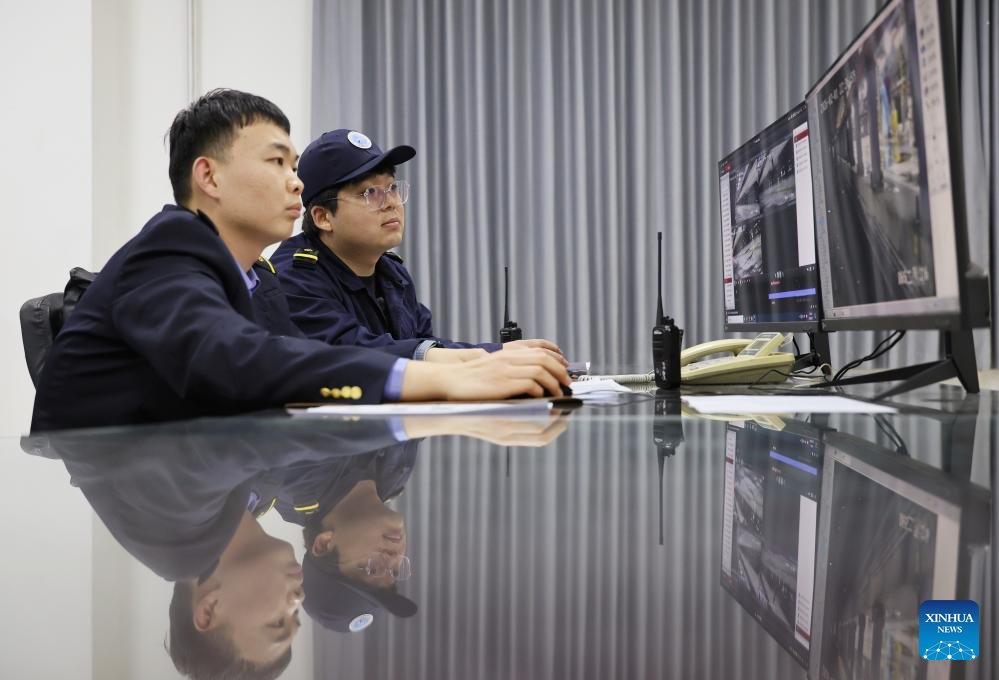 Li Qiwei (R) checks the monitoring screen with his colleague at an electric multiple unit (EMU) maintenance depot in north China's Tianjin Municipality, on Feb. 1, 2026. Several EMU trains are neatly lined up for "health checkups" inside a maintenance depot in Tianjin at the night of Feb. 1, right before the start of Spring Festival travel rush, the annual homeward journey in China, and also the world's largest human migration.
