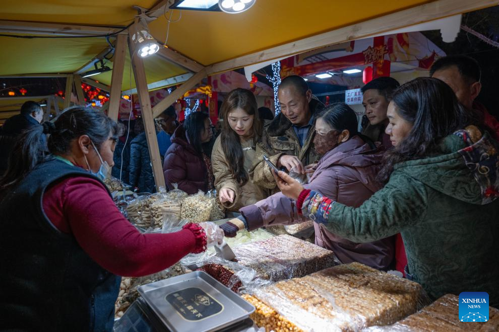People shop at a fair featuring Chinese New Year goods in southwest China's Chongqing Municipality, Feb. 5, 2026. A fair featuring Chinese New Year goods kicked off here on Thursday, offering residents a one-stop destination for New Year shopping with diverse choices. (Xinhua/Chen Cheng)