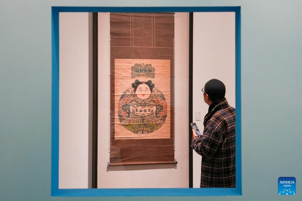 A man visits an exhibition on Taohuawu woodblock New Year prints at Suzhou Art Museum in Suzhou, east China's Jiangsu Province, Feb. 4, 2026.