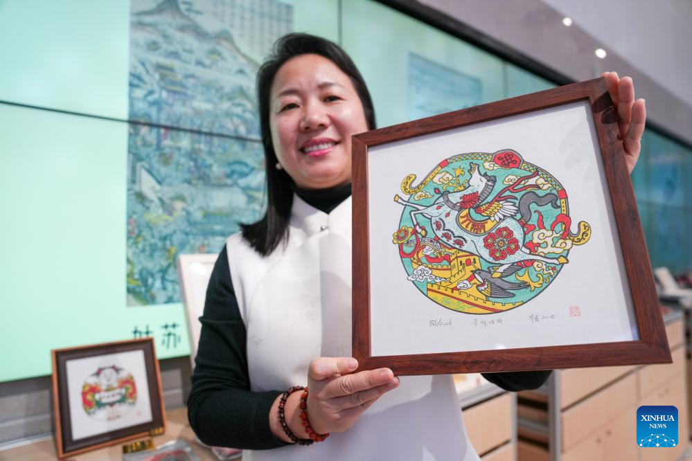 With the Spring Festival approaching, Taohuawu woodblock New Year prints have been updated with fresh designs featuring the Year of the Horse elements. An exhibition of these prints is also being held at the Suzhou Art Museum. Meanwhile people can experience the prints making process in person and purchase cultural and creative products at a promotion center of Taohuawu woodblock New Year prints. (Xinhua/Li Bo)