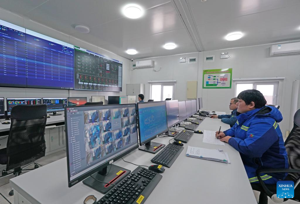 Staff members monitor the operation of wind turbines in the main control room of the wind power plant on Mianchuan Island of Jiujiang City, east China's Jiangxi Province, Jan. 29, 2026. Mianchuan Island, located in the Jiangxi section of the Yangtze River and surrounded by water, covers an area of 104 square kilometers. It can be reached by a ten-minute ferry ride from Madang Ferry Terminal in Jiujiang City. (Xinhua/Wan Xiang)
