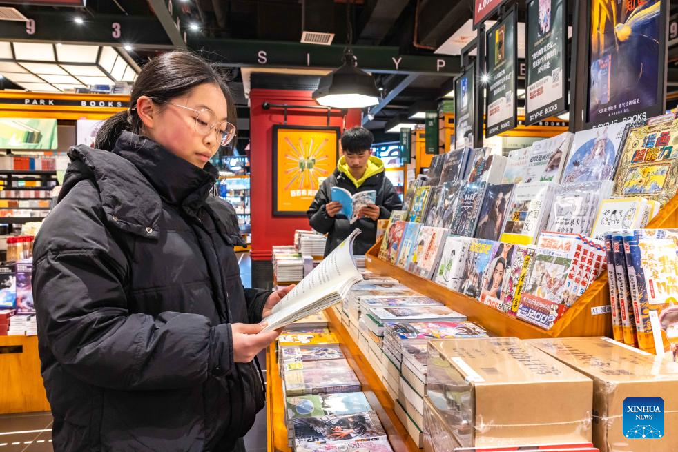 Students read books at a bookstore in Anshun, southwest China's Guizhou Province, on Feb. 8, 2026. Various extracurricular activities are available for students across China during the winter vacation. (Photo by Chen Xi/Xinhua)