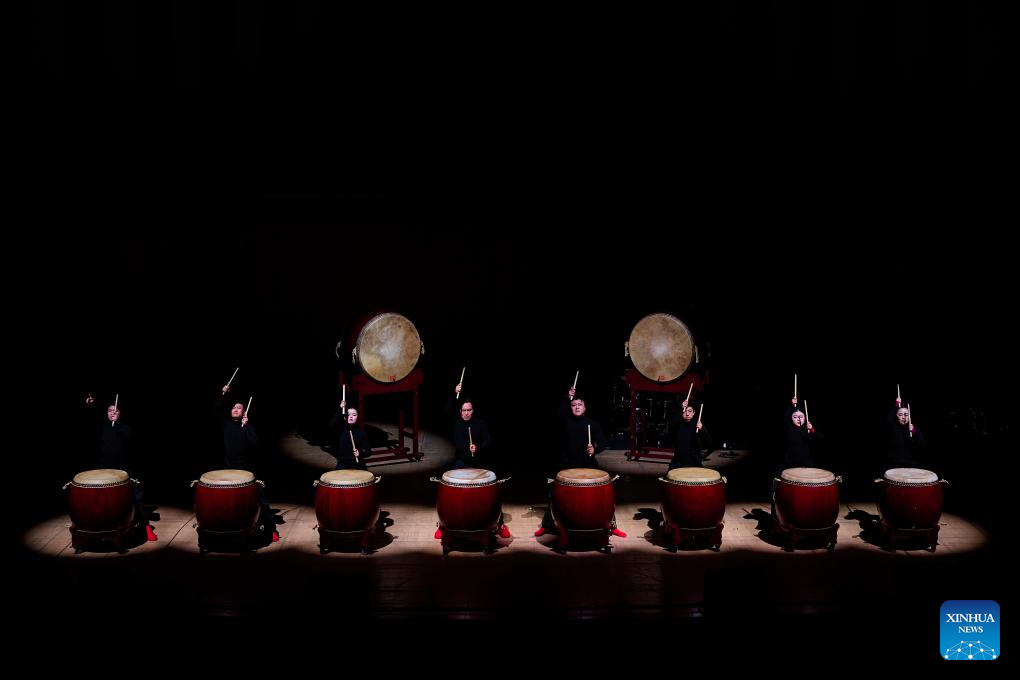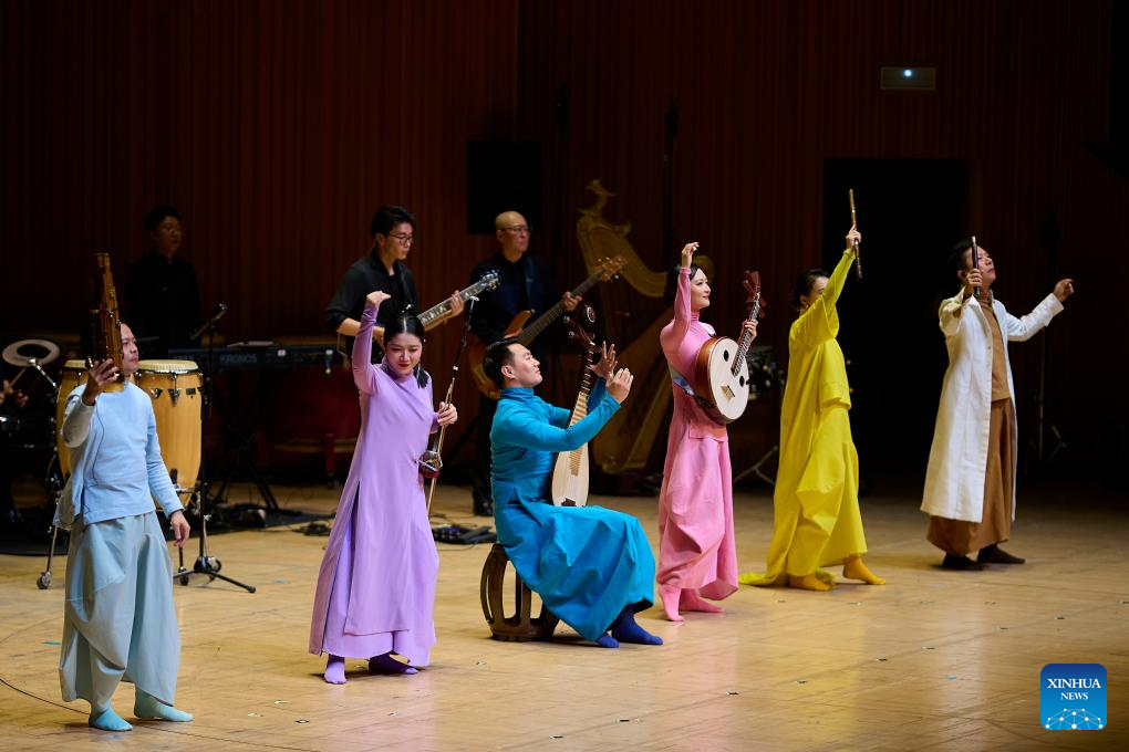 Members of the Shanghai Chinese Orchestra perform during the "Colors of China" concert in Valencia, Spain, Feb. 10, 2026. (Photo by Pablo Morano/Xinhua)