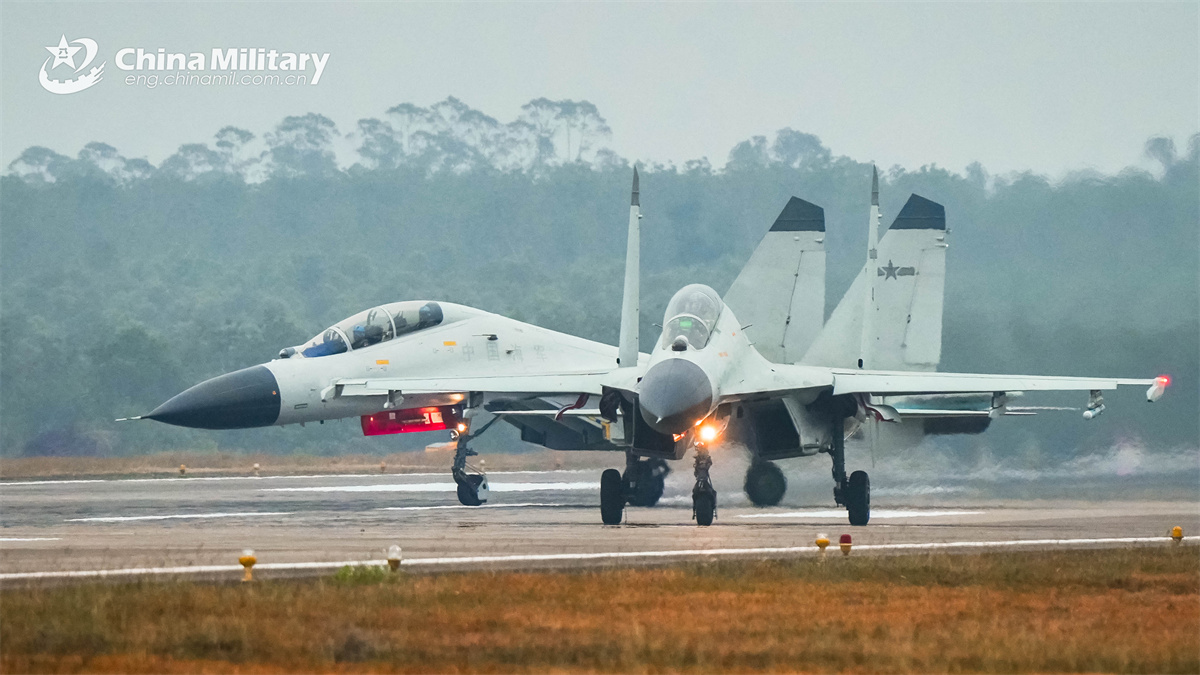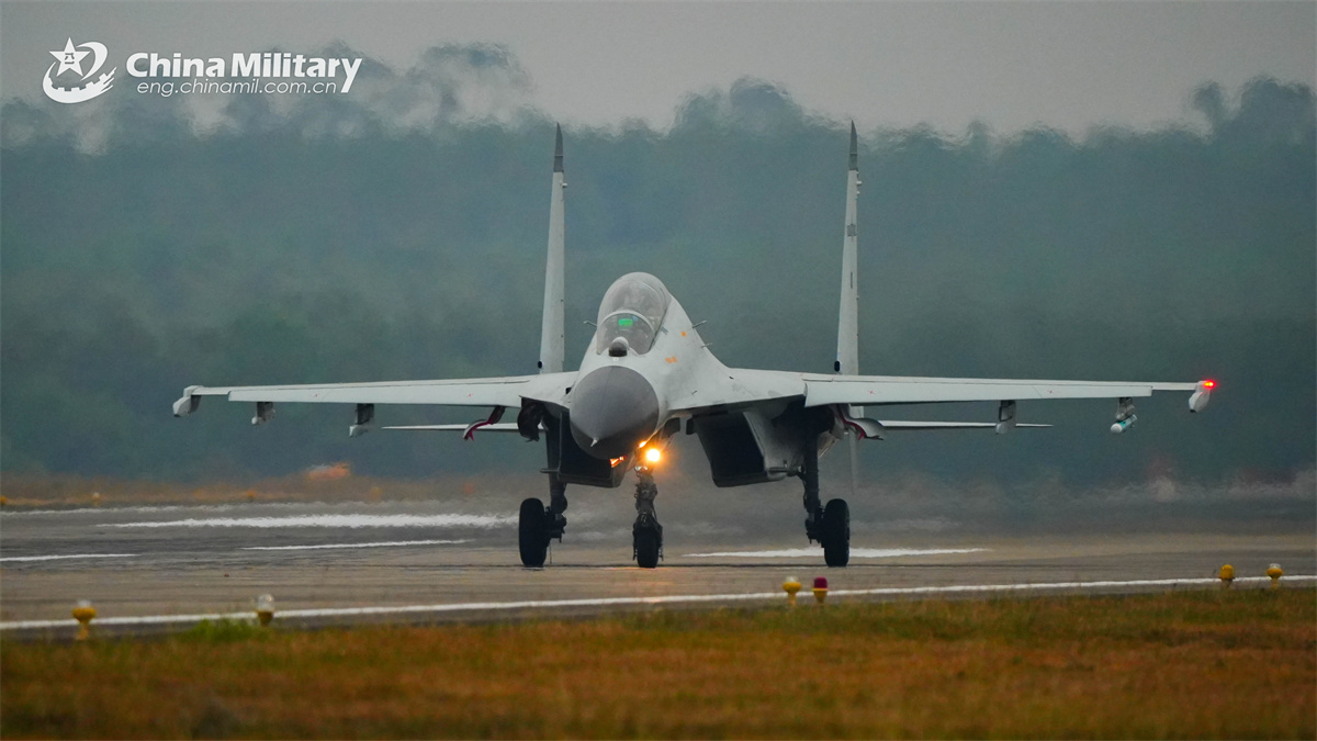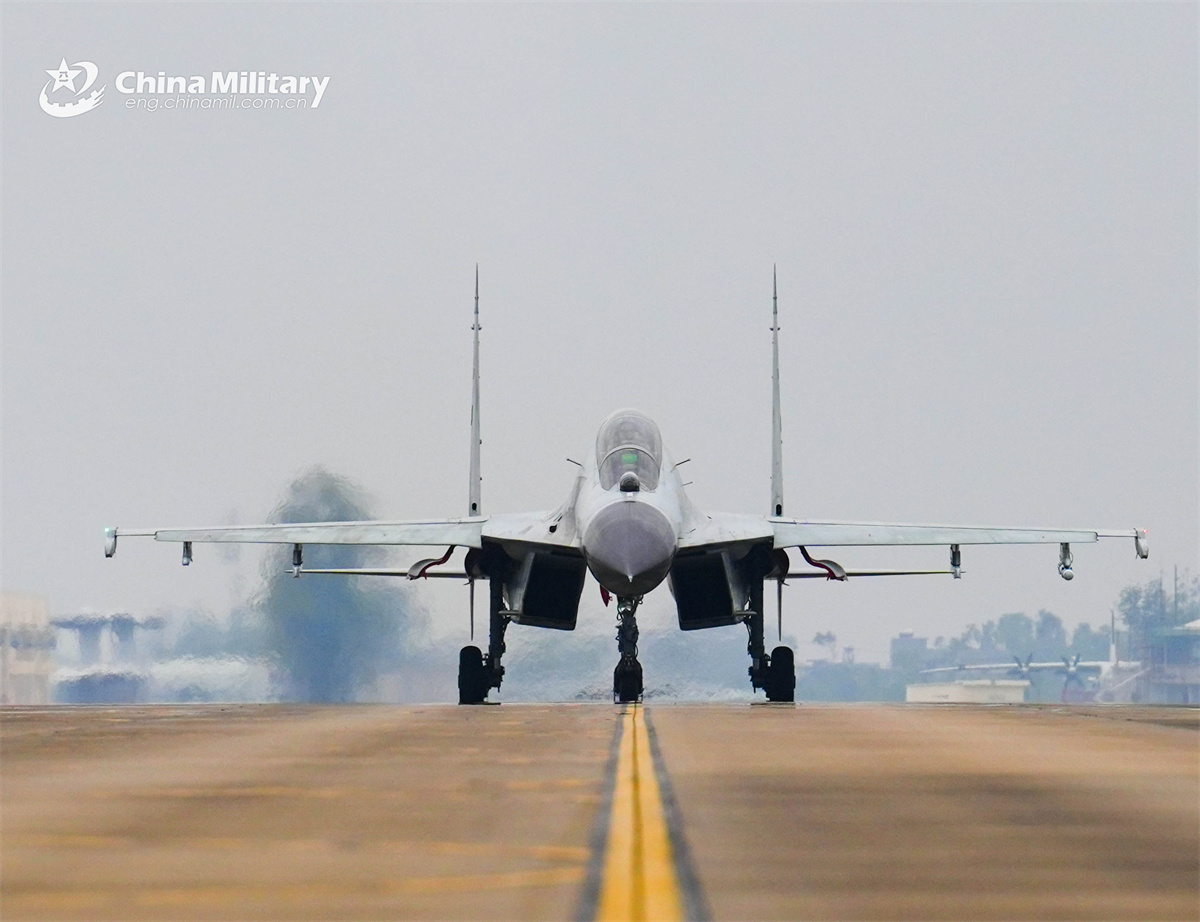 A J-11BSH fighter jet attached to an aviation unit with the navy under the Chinese PLA Southern Theater Command taxis on the runway during a flight training exercise. (eng.chinamil.com.cn/Photo by Fu Jinquan)