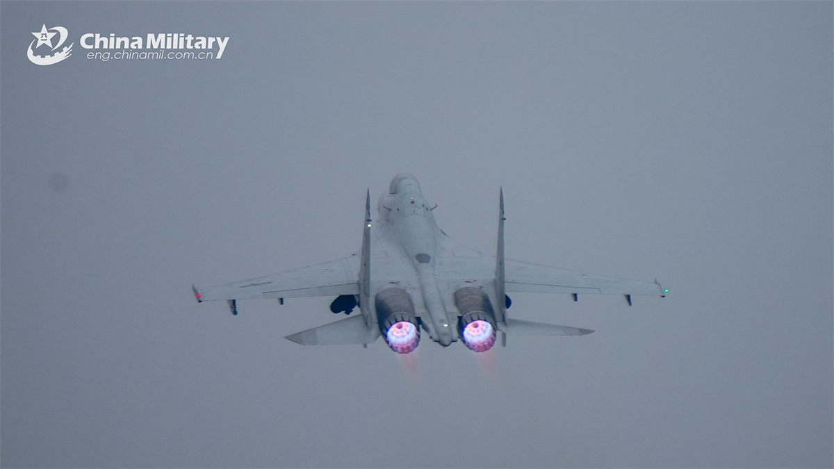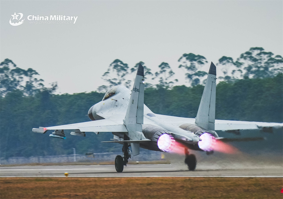 A J-11BSH fighter jet attached to an aviation unit with the navy under the Chinese PLA Southern Theater Command soars into the sky during a flight training exercise. (eng.chinamil.com.cn/Photo by Fu Jinquan)