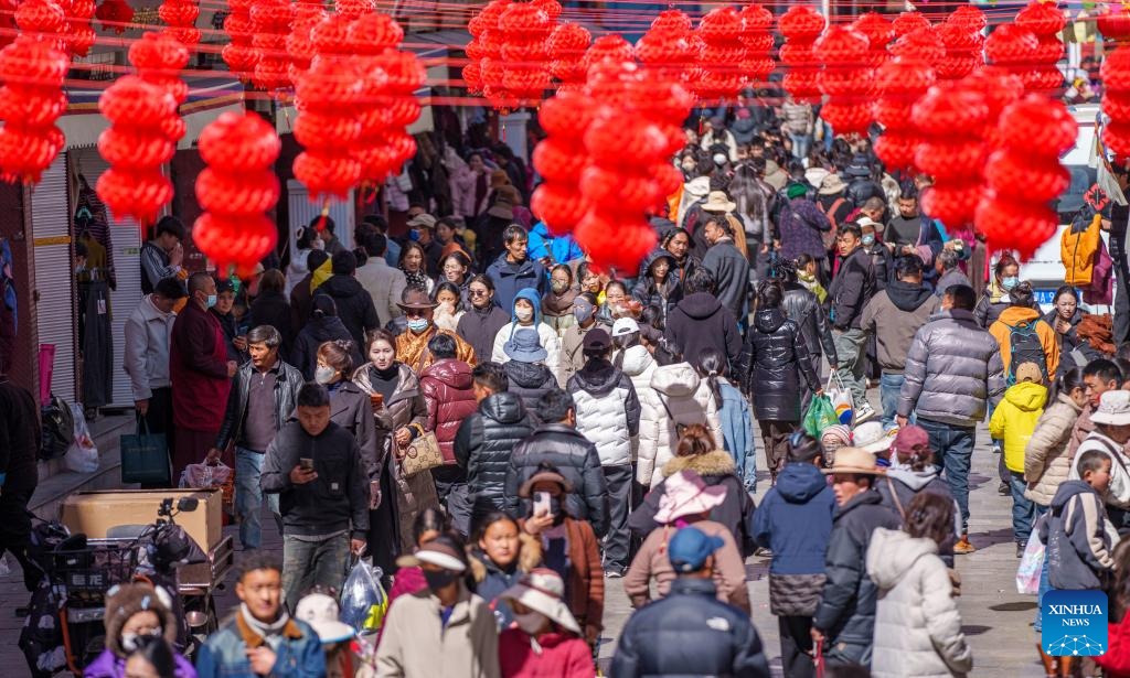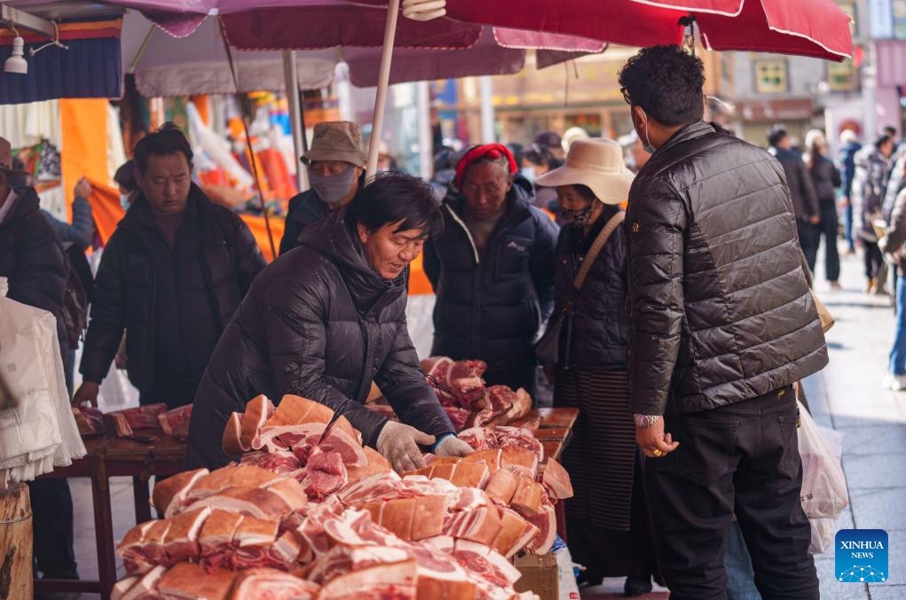 Markets bustle ahead of Spring Festival, Tibetan New Year in Lhasa, China's Xizang