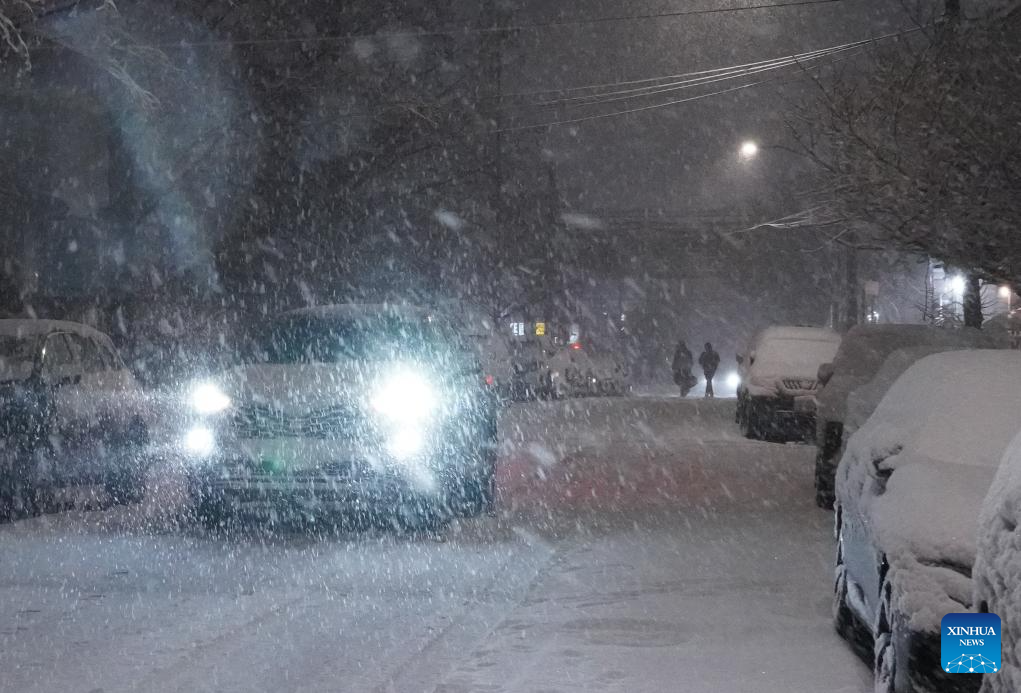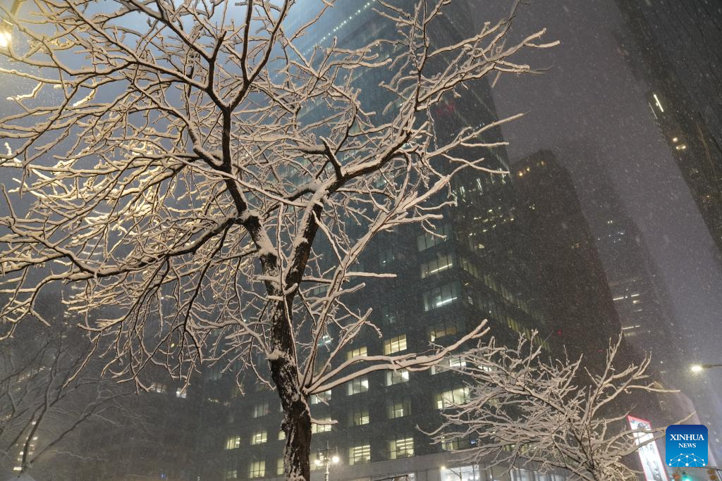 NEW YORK, Feb. 22 (Xinhua) -- New York City (NYC) Mayor Zohran Mamdani on Sunday declared a state of emergency and issued a travel ban as a winter storm hit the region, causing hundreds of flight cancellations.