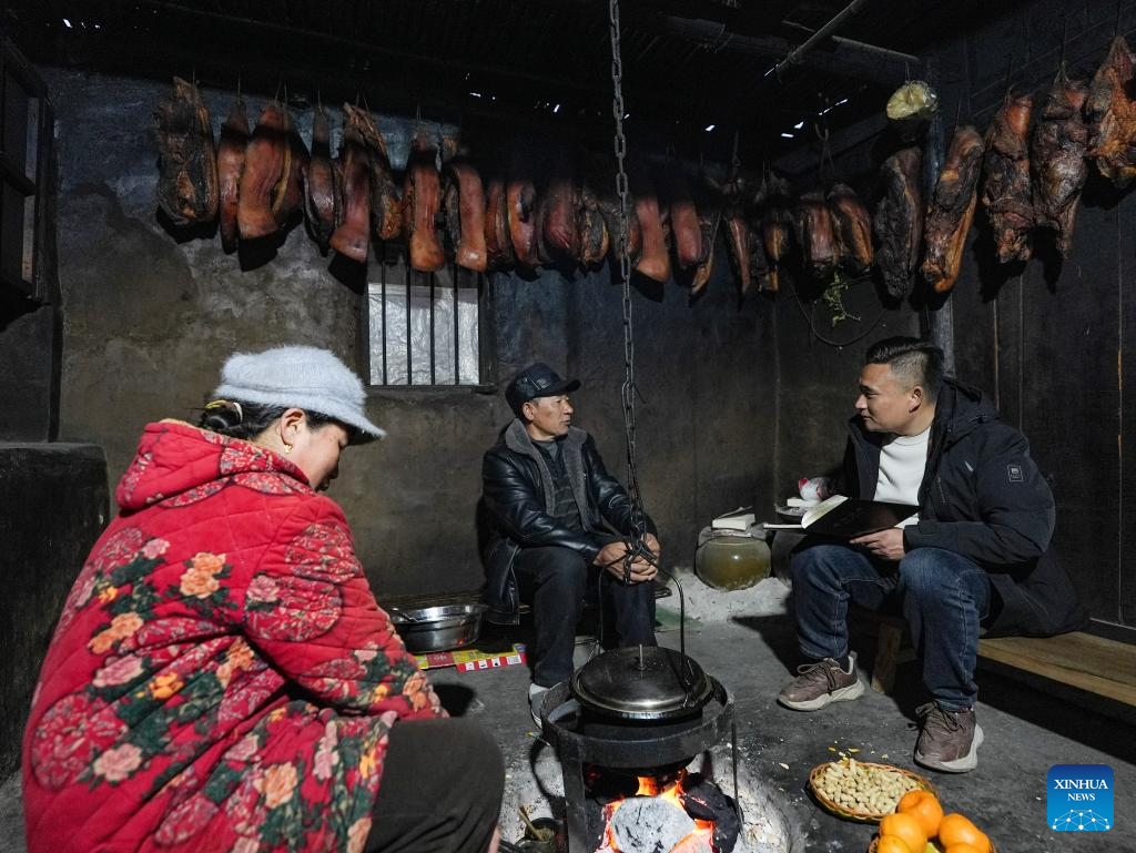 Zheng Wangchun (R) talks with the owner of a homestay in Gulu Village of Hanyuan County, southwest China's Sichuan Province, Jan. 29, 2026. (Xinhua/Wang Xi)