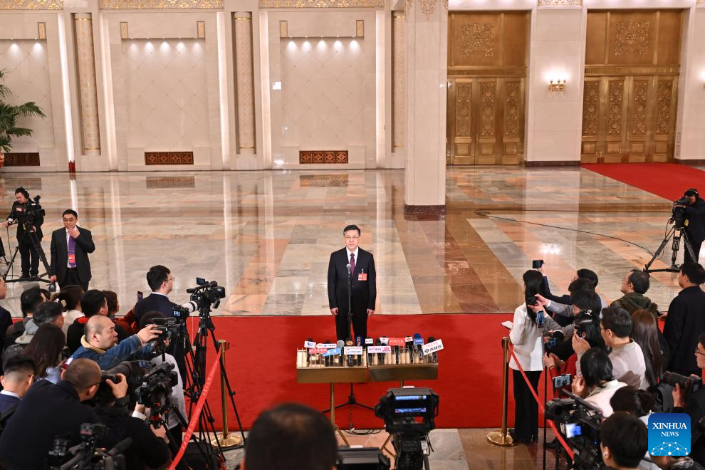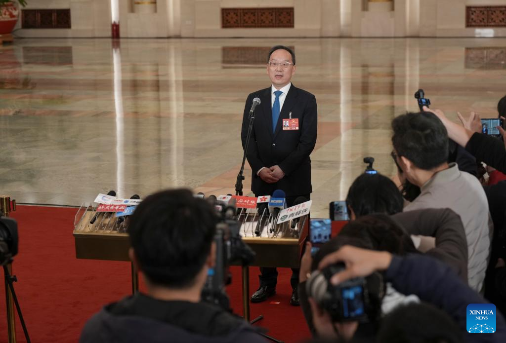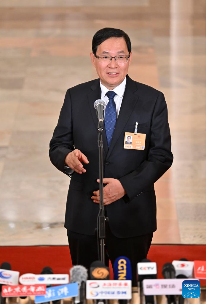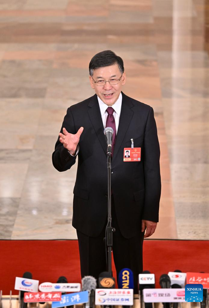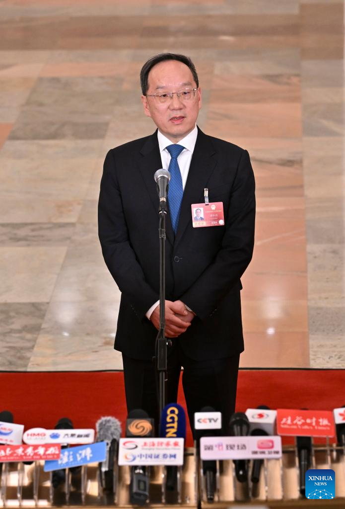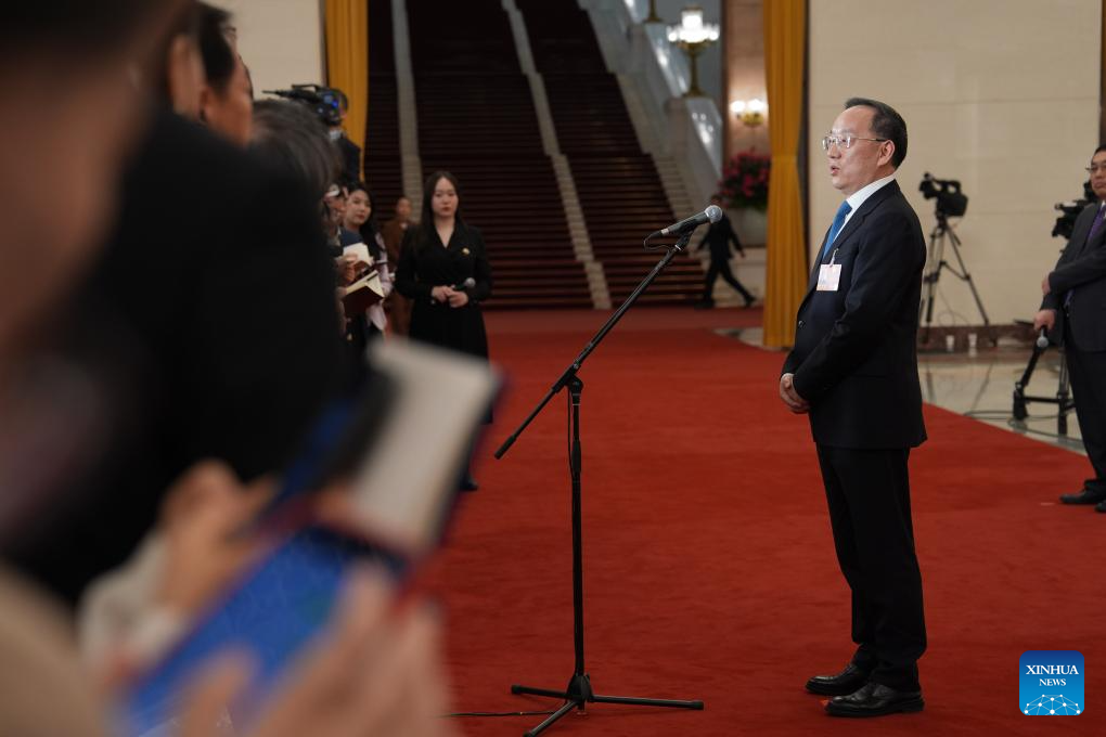Chinese Minister of Science and Technology Yin Hejun gives an interview after the opening meeting of the fourth session of the 14th National People's Congress (NPC) at the Great Hall of the People in Beijing, capital of China, March 5, 2026. (Xinhua/Jin Liwang)