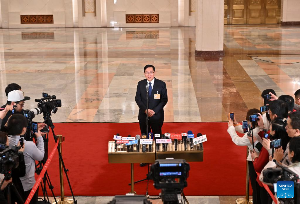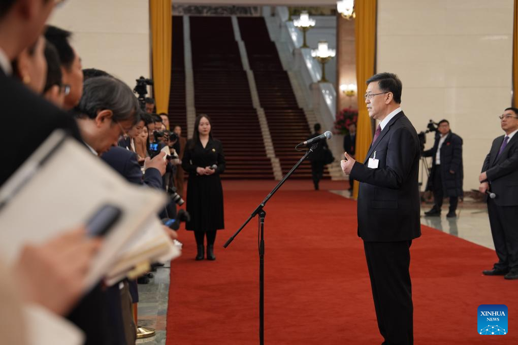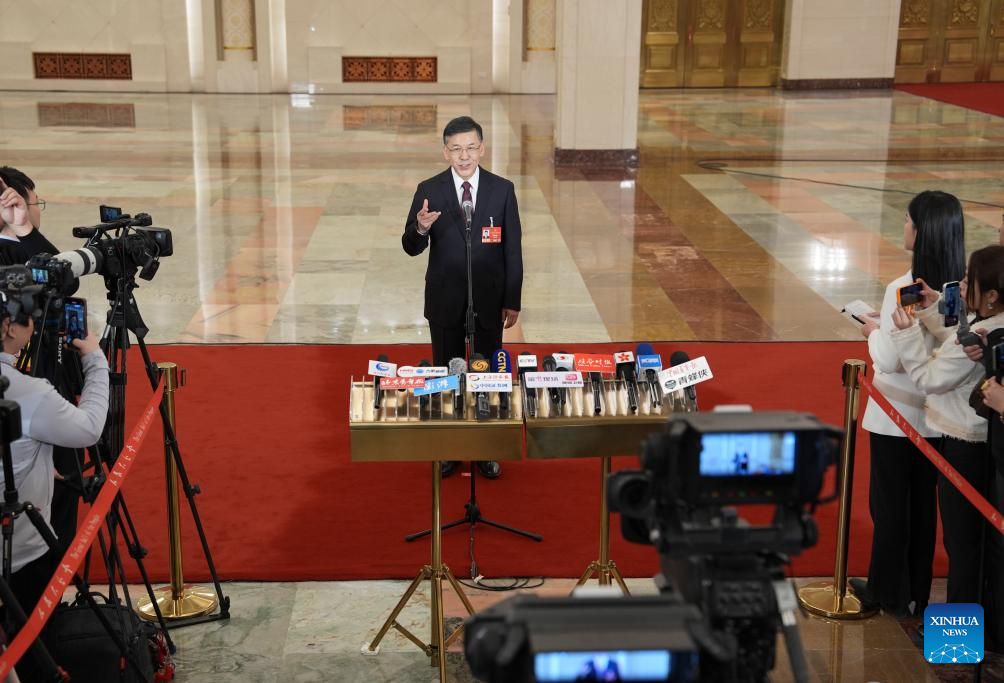 Chinese Minister of Science and Technology Yin Hejun gives an interview after the opening meeting of the fourth session of the 14th National People's Congress (NPC) at the Great Hall of the People in Beijing, capital of China, March 5, 2026. (Xinhua/Wang Xi)
