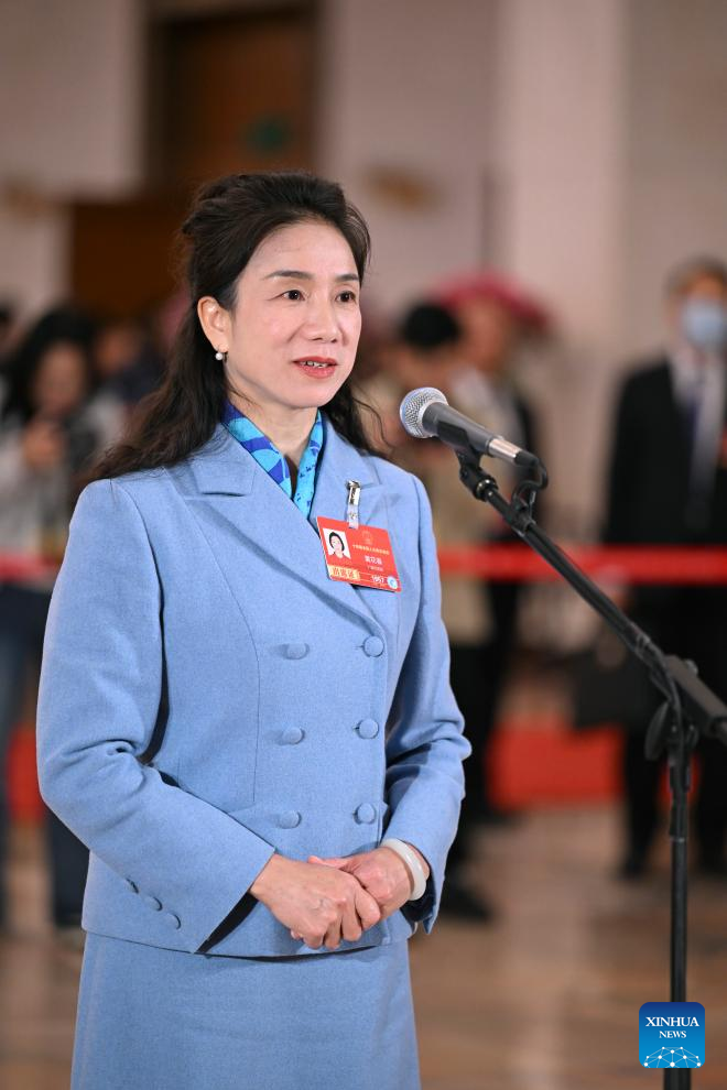 Huang Huachun, a deputy to the 14th National People's Congress (NPC), attends a group interview ahead of the second plenary meeting of the fourth session of the 14th NPC at the Great Hall of the People in Beijing, capital of China, March 9, 2026. (Xinhua/Cheng Tingting)