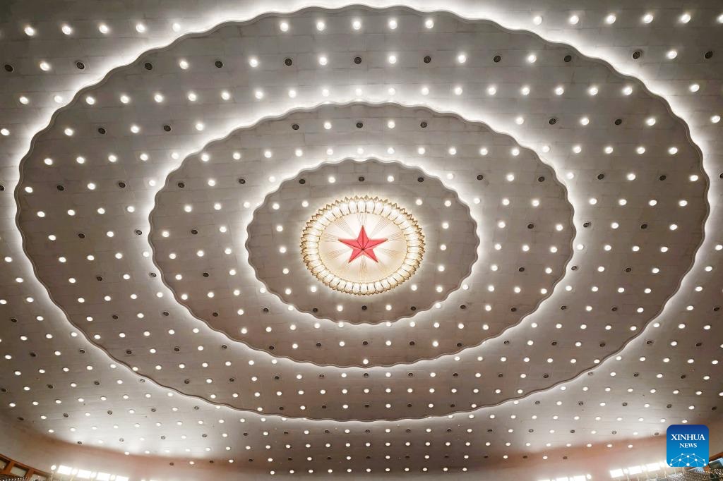 This photo taken on March 9, 2026 shows an interior view of the Great Hall of the People, the venue for the second plenary meeting of the fourth session of the 14th National People's Congress (NPC), in Beijing, capital of China. (Xinhua/Xing Guangli)