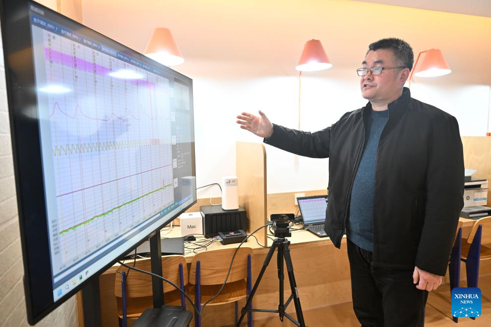 Zuo Binbin, founder of a tech startup, briefs on a multi-modal psychological assessment system at a one-person-company (OPC) community in Nanjing, east China's Jiangsu Province, March 11, 2026. (Xinhua/Ji Chunpeng)