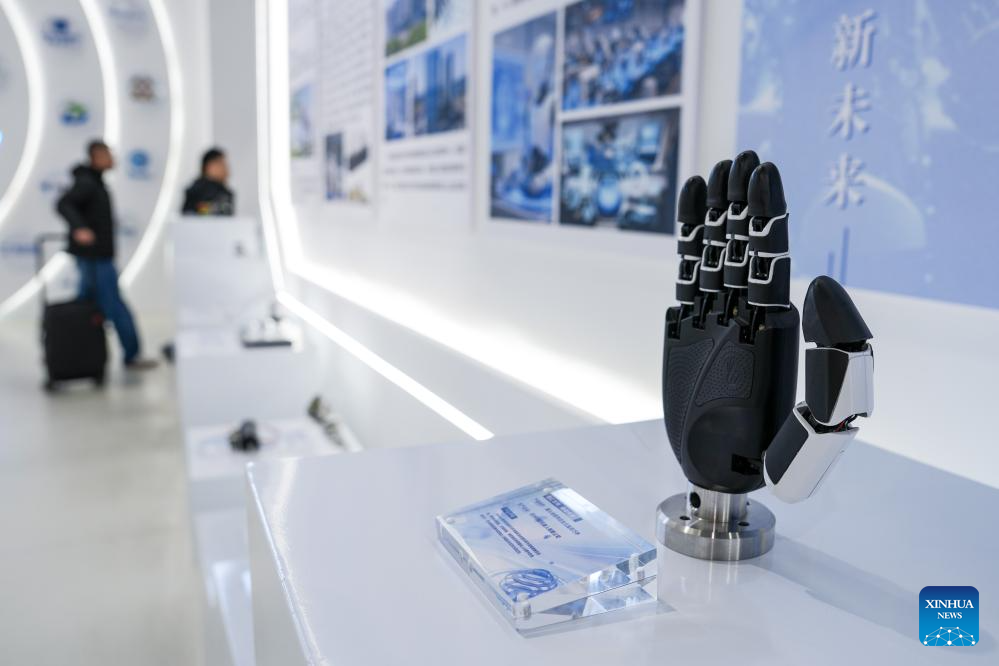 This photo taken on March 10, 2026 shows a bionic hand displayed at the Suzhou Embodied Artificial Intelligence Robotics Innovation Center in Suzhou, east China's Jiangsu Province. (Xinhua/Li Bo)