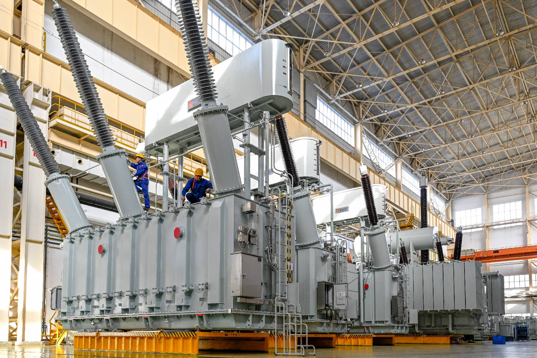 Technicians test new energy transformers at a workshop in Hefei, east China's Anhui province, before the equipment is delivered to customers. (Photo/Zhao Ming)