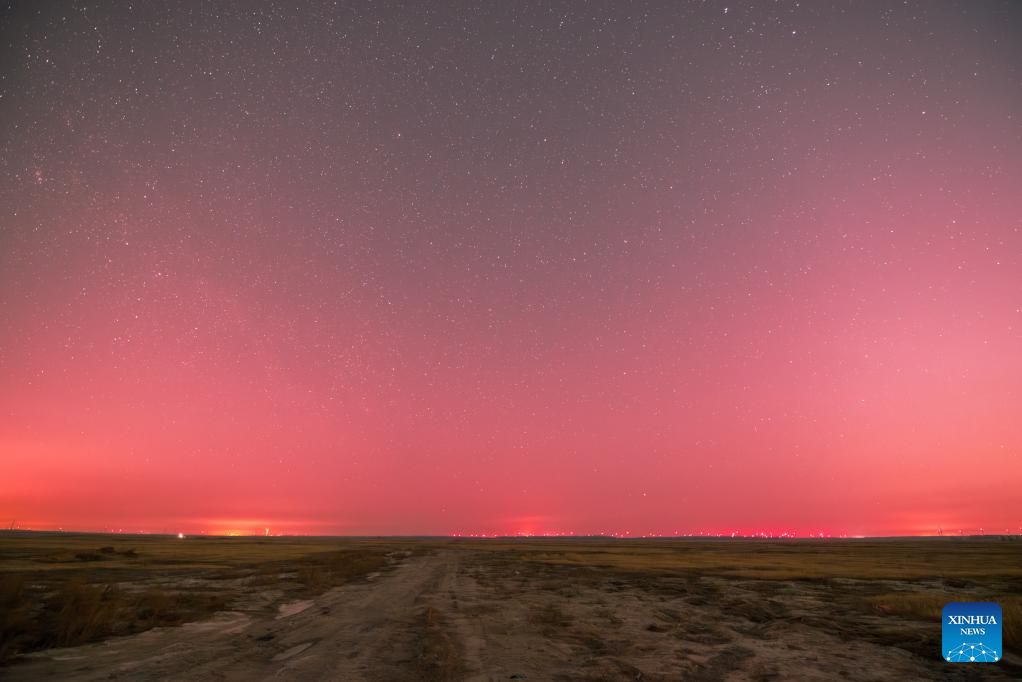 This photo taken on March 22, 2026 shows the aurora observed from Daqing City, northeast China's Heilongjiang Province. Due to the influence of geomagnetic activities, many places in Heilongjiang Province witnessed splendid auroras from the night of March 22 to the early morning of March 23. (Photo by Liu Wei/Xinhua)